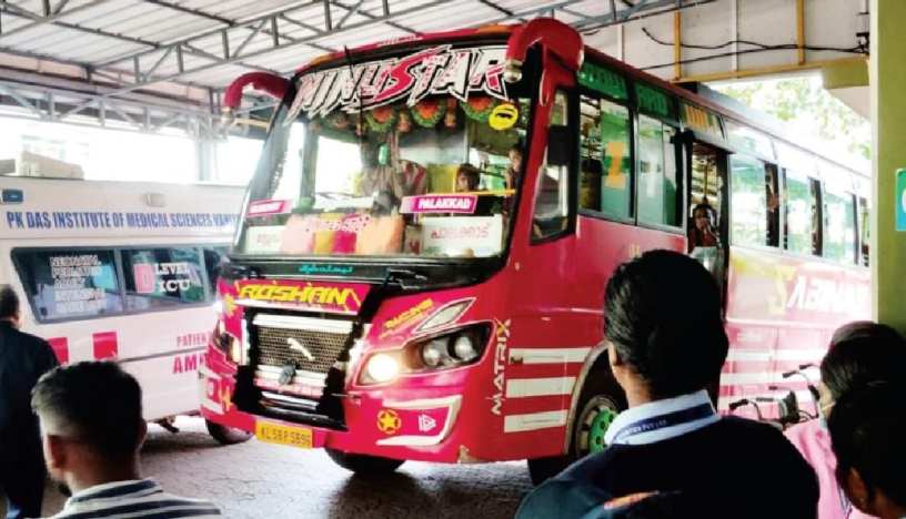 ബസ് വാണിയംകുളം പി.കെ. ദാസ് ആശുപത്രിയിൽ എത്തിച്ചപ്പോൾ