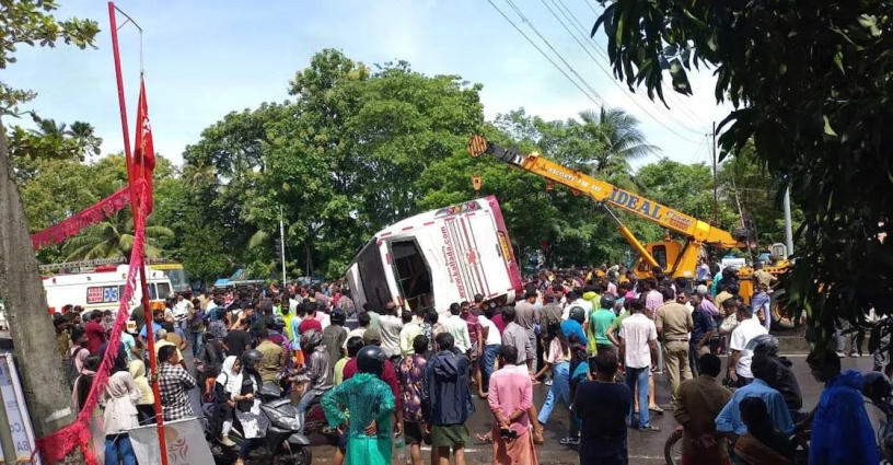 റെഡ് സിഗ്നൽ വന്നതോടെ ബസ് നിർത്താനുള്ള ശ്രമത്തിൽ സഡൻ ബ്രേക്കിട്ടതാണ് അപകടത്തിനു കാരണമായത്. ഇതോടെ നിയന്ത്രണം നഷ്ടമായ ബസ് സമീപം നിർത്തിയിട്ട ബൈക്കിനു മുകളിലേക്ക് മറയുകയായിരുന്നു. നിരവധി പേരെ സാരമായ പരുക്കുകളോടെ ആശുപത്രിയിൽ പ്രവേശിപ്പിച്ചു. അതീവ ഗുരുതരാവസ്ഥയിൽ ആശുപത്രിയിലെത്തിച്ച ബൈക്ക് യാത്രികൻ മരണത്തിനു കീഴടങ്ങി.