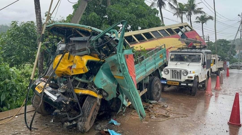 തിരുവനന്തപുരത്തേക്ക് പോകുകയായിരുന്ന കെ.എസ്.ആര്.ടി.സി ഫാസ്റ്റ് പാസഞ്ചര് ബസും റബ്ബര് തൈകളുമായി വന്ന ടെംപോയുമാണ് കൂട്ടിയിച്ചത്. ടെംപോയുടെ മുന്ഭാഗം പൂര്ണമായും തകര്ന്ന നിലയിലാണ്.