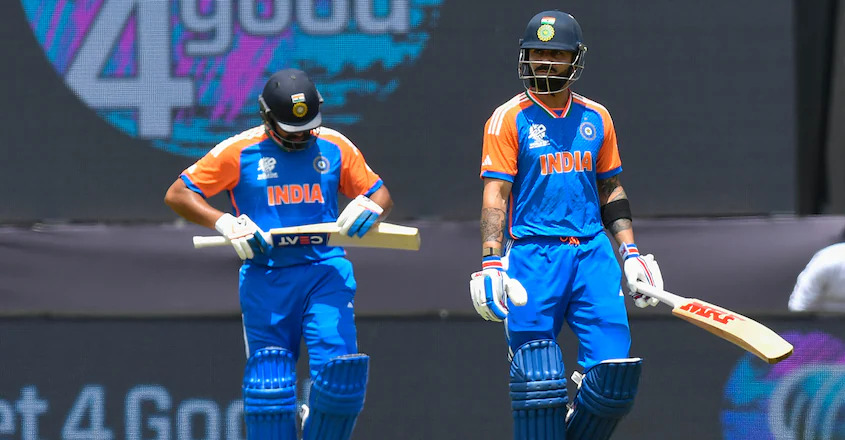 രോഹിത് ശർമയും വിരാട് കോലിയും ബാറ്റിങ്ങിനിടെ. Photo: RandyBrooks/AFP