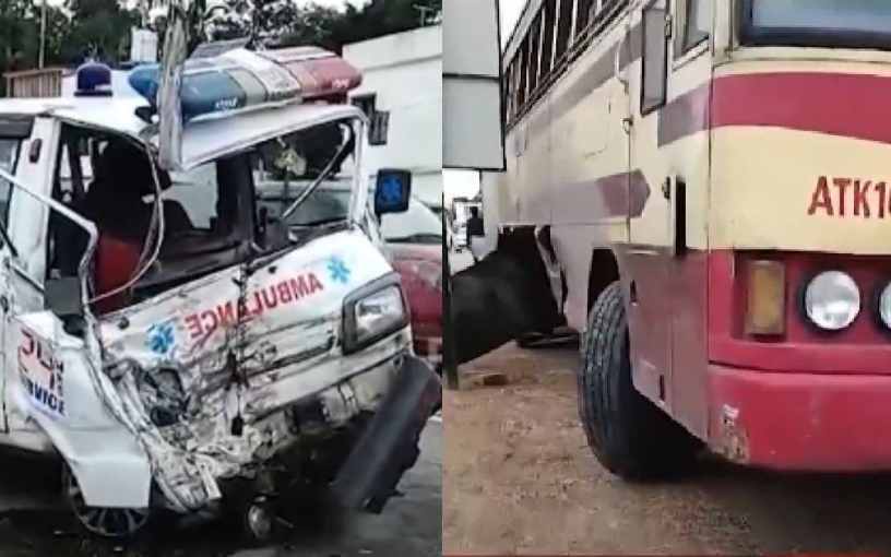 അപകടത്തിൽപ്പെട്ട കെഎസ്ആർടിസി ബസും ആംമ്പുലൻസും