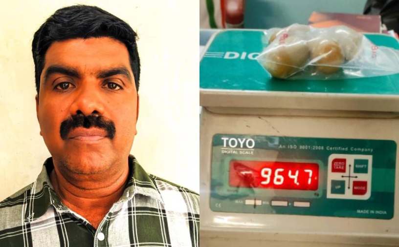 പിടിയിലായ മുഹമ്മദ് റഷീദും പോലീസ് പിടിച്ചെടുത്ത സ്വർണവും