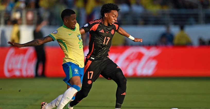 സാന്റാ ക്ലാര ∙ കോപ്പ അമേരിക്ക ഫുട്ബോൾ ടൂർണമെന്റിൽ ഇന്നു പുലർച്ചെ നടന്ന ബ്രസീല് – കൊളംബിയ മത്സരം സമനിലയിൽ അവസാനിച്ചു. ഇരു ടീമുകളും ഓരോ ഗോൾ വീതം നേടി. കളിയുടെ പന്ത്രണ്ടാം മിനിറ്റിൽ ബ്രസീലിനു വേണ്ടി റാഫീഞ്ഞോ ഗോൾ അടിച്ചെങ്കിലും ആദ്യപകുതിയില് അനുവദിച്ച അധികസമയത്തില് കൊളംബിയയുടെ ഡാനിയേൽ മുനോസ് ഗേൾ തിരിച്ചടിച്ചു.