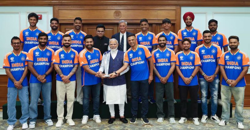 ഇന്ത്യൻ ക്രിക്കറ്റ് താരങ്ങൾ പ്രധാനമന്ത്രി നരേന്ദ്ര മോദിക്കൊപ്പം. Photo: X@NarendraModi