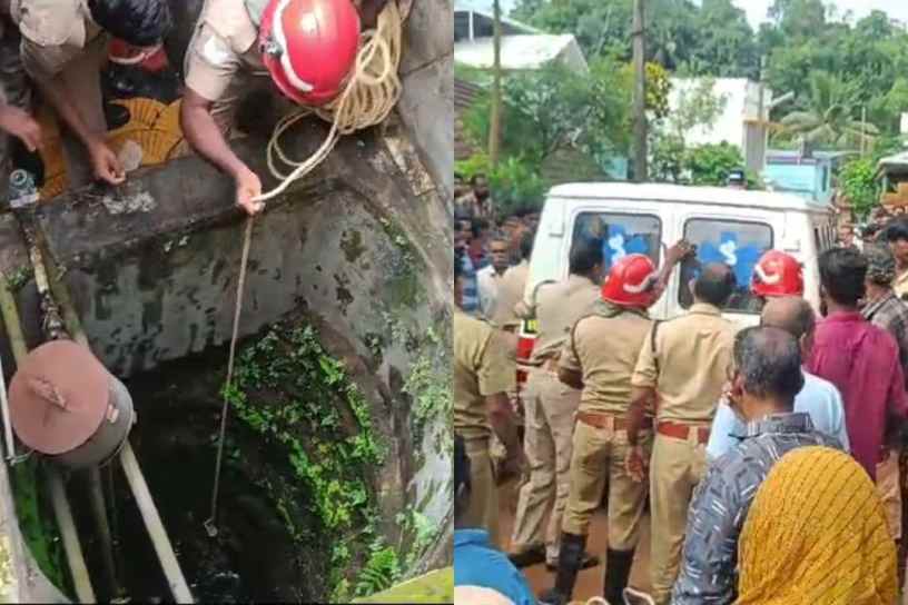1.അഗ്നിരക്ഷാസേനാംഗങ്ങൾ കിണറ്റിൽ നിന്ന് മൃതദേഹം പുറത്തെടുക്കുന്നു, 2. മൃതദേഹം ആംബുലൻസിലേക്ക് മാറ്റിയപ്പോൾ