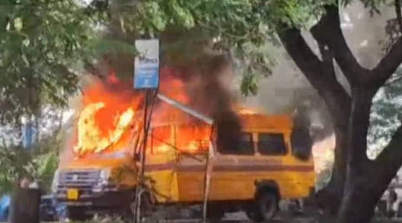 അതുവഴി വന്ന കുടിവെള്ള ടാങ്കറിൽ പൈപ്പ് ഘടിപ്പിച്ച് സംഭവസ്ഥലത്തുണ്ടായിരുന്ന ട്രേഡ് യൂണിയൻ തൊഴിലാളികളാണ് ആദ്യം തീയണയ്ക്കാനുള്ള ശ്രമം നടത്തിയത്. എന്നാൽ, വെള്ളം ശക്തിയിൽ പമ്പ് ചെയ്യാൻ സാധിക്കാത്തതിനാൽ തീ അണയ്ക്കാനായില്ല. ഏതാണ്ട് പത്തുമിനിറ്റിന് ശേഷം സംഭവസ്ഥലത്തെത്തിയ ഫയർ ഫോഴ്സ് തീയണച്ചെങ്കിലും ബസ് പൂർണമായും കത്തിനശിച്ചു. വിദ്യാർഥികൾ ബസിലില്ലാത്തതിനാൽ വലിയ ദുരന്തമാണ് വഴിമാറിയത്.