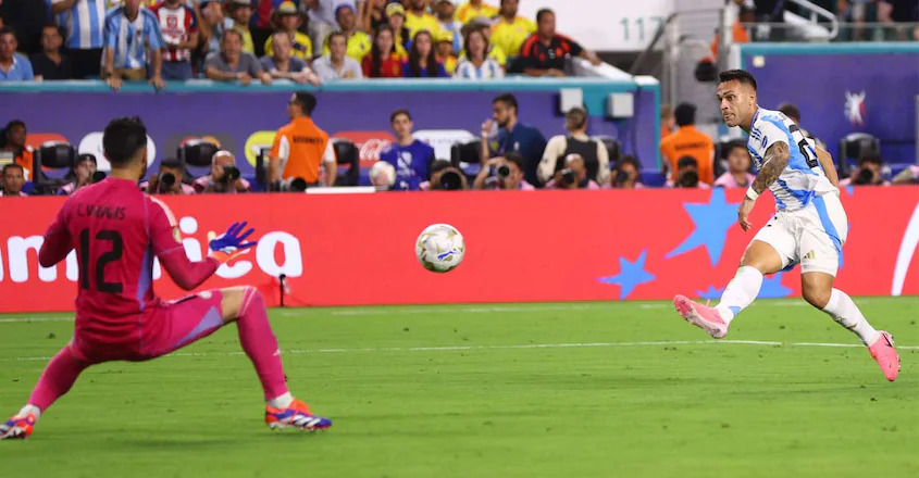 എക്സ്ട്രാ ടൈമിന്റെ ആദ്യ പകുതിയും ഗോള്രഹിതമായിരുന്നു. എന്നാല് 112-ാം മിനിറ്റില് അര്ജന്റീനയുടെ രക്ഷകനായി ലൗട്ടാറോ മാര്ട്ടിനസെത്തി. മൈതാനമധ്യത്ത് നിന്ന് ഡീപോള് നല്കിയ പന്ത് ലോ സെല്സോ സമയം പാഴാക്കാതെ ബോക്സിലേക്ക് നീട്ടി. ഓടിയെത്തിയ ലൗട്ടാറോ ഗോളിയെ മറികടന്ന് വലകുലുക്കി. പിന്നാലെ അര്ജന്റീന കോപ്പ കിരീടത്തില് മുത്തമിട്ടു.