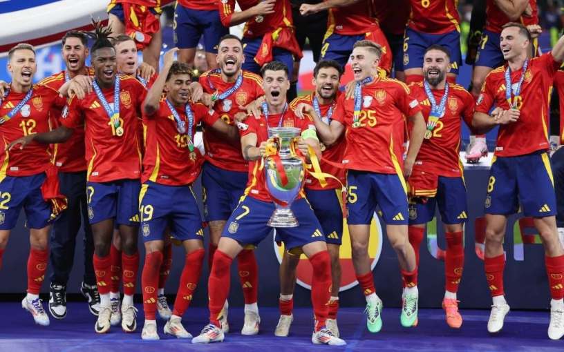 രാജകീയമായിത്തന്നെയാണ് സ്പെയിനിന്റെ കിരീട ധാരണം. ക്രൊയേഷ്യ, ഇറ്റലി, ജര്മനി, ഫ്രാന്സ്, ഇംഗ്ലണ്ട് തുടങ്ങിയ യൂറോപ്പിലെ വമ്പന് ടീമുകളെ മറികടന്ന് തോല്ക്കാതെയാണ് കപ്പിലെത്തിയത്. 2012 ജൂലായ് ഒന്നിന് യുക്രൈനിലെ കീവില് ഇറ്റലിയെ തകര്ത്ത് കിരീടം നേടിയതില്പ്പിന്നെ സ്പെയിന് നേടുന്ന ആദ്യ പ്രധാന ടൂര്ണമെന്റ് കിരീടം ആണിത്.