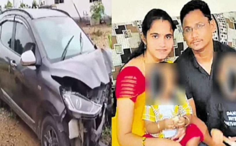 അപകടത്തിൽപ്പെട്ട കാർ(ഇടത്ത്) പ്രവീണും കുടുംബവും(വലത്ത്) | Photo Courtesy: x.com/Delhiite_ & Youtube.com/V6 News Telugu