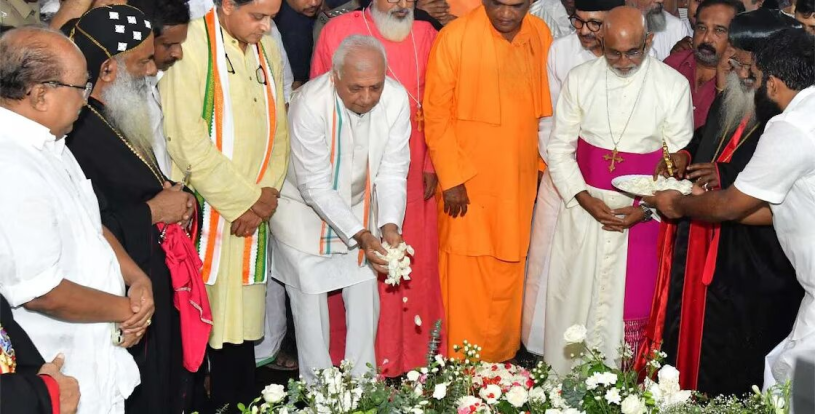 ഉമ്മൻചാണ്ടിയുടെ കബറിടത്തിൽ പുഷ്പാർച്ചന നടത്തുന്ന ഗവർണർ ആരിഫ് മുഹമ്മദ് ഖാൻ