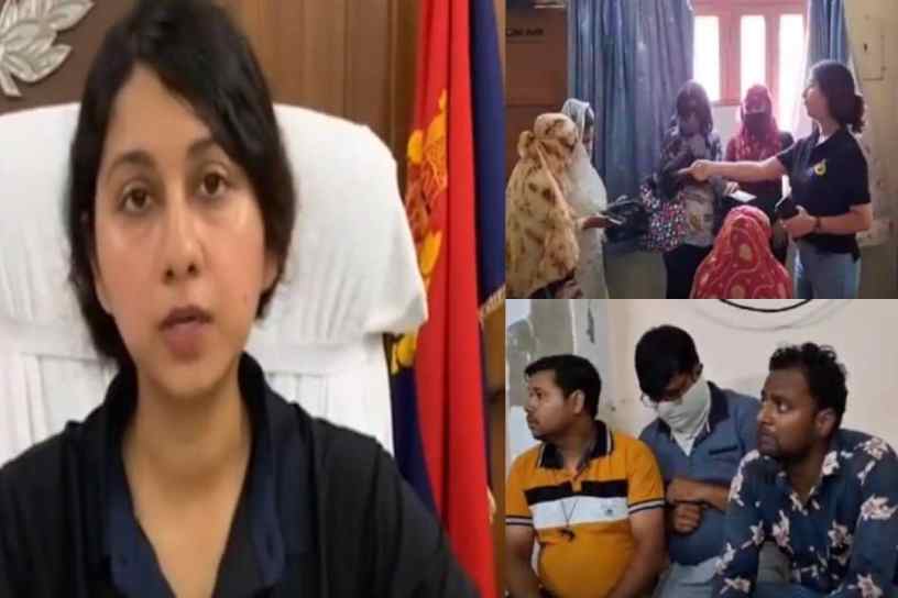 എ.ഡി.സി.പി. നീതുകുമാരി(ഇടത്ത്) പ്രതികളെ കസ്റ്റഡിയിലെടുക്കുന്ന ദൃശ്യം(വലത്ത്) | Photo Courtesy: x.com/ians_india & Youtube.com/India Live News 24