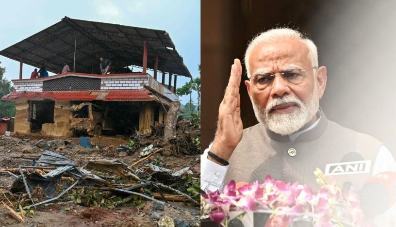 വയനാട്ടിലെ ഉരുൾപൊട്ടൽ ദുരന്തത്തിൽ തകർന്ന വീട്, നരേന്ദ്രമോദി | Photo:AFP