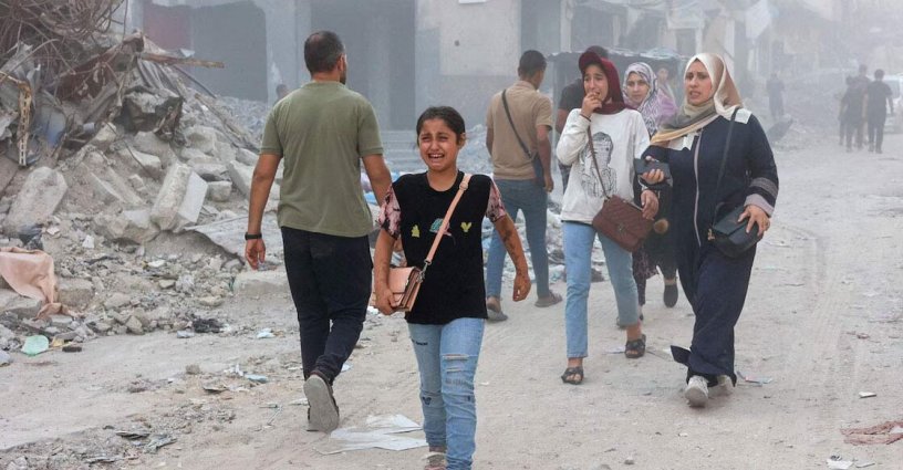 ഗാസയിലെ സ്കൂളിൽ ഇസ്രയേൽ നടത്തിയ ബോംബാക്രമണത്തെത്തുടർന്ന് ഭയന്ന് കരയുന്ന പലസ്തീൻ പെൺകുട്ടി. ചിത്രം: AFP