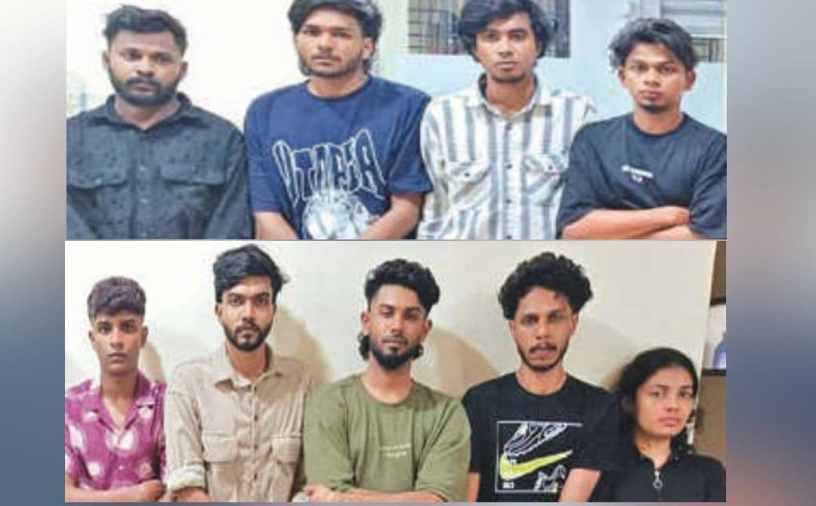 കാക്കനാട് ഈച്ചമുക്കിലെ ഫ്ലാറ്റില് നടത്തിയ പരിശോധനയില് ലഹരി ഉപയോഗിച്ചുകൊണ്ടിരുന്ന പാലക്കാട് സ്വദേശികളായ സാദിക്ക് ഷാ (22), സുഹൈല്, രാഹുല് (22), ആകാശ് (22), തൃശ്ശൂര് സ്വദേശികളായ അതുല് കൃഷ്ണ (23), മുഹമ്മദ് റാം ഷേക്ക് (23), നിഖില് (24), നിധിന് (24), റൈഗല് (18), എന്നിവരെ അറസ്റ്റ് ചെയ്തു. ഇവരുടെ കൈയില്നിന്ന് വില്പനയ്ക്കായി കവറുകളില് സൂക്ഷിച്ച 13.52 ഗ്രാം എം.ഡി.എം.എ. കണ്ടെടുത്തു. കാക്കനാടും പരിസരത്തും മയക്കുമരുന്ന് വില്പന നടത്തുന്ന സംഘത്തില്പ്പെട്ടവരാണ് പിടിയിലായത്. സുഹൈല്, നിധിന് എന്നിവര് മുന്പും കേസുകളില് ഉള്പ്പെട്ടവരാണെന്ന് പോലീസ് വ്യക്തമാക്കി. ഇന്ഫോപാര്ക്ക് പോലീസ് എസ്.ഐ. മാരായ സജീവ്, ബദര് എന്നിവരുടെ നേതൃത്വത്തിലാണ് ഇവരെ പിടികൂടിയത്.