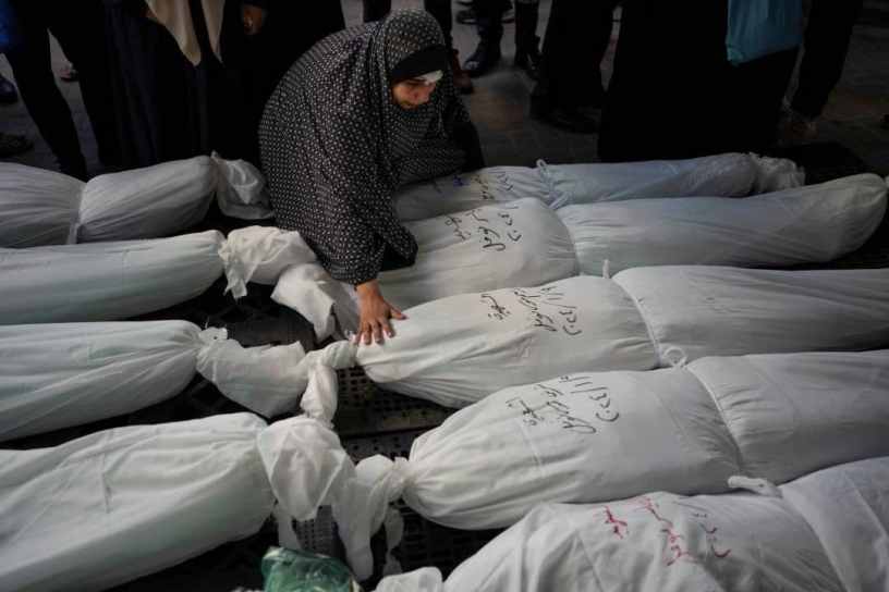 ഗാസയിൽ ഇസ്രയേൽ ആക്രമണത്തിൽ കൊല്ലപ്പെട്ടവരുടെ ഇടയിൽ തന്റെ പ്രിയപ്പെട്ടവരെ തിരയുന്ന സ്ത്രീ |ഫോട്ടോ:AP