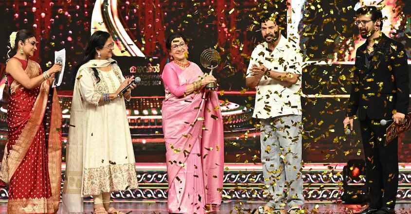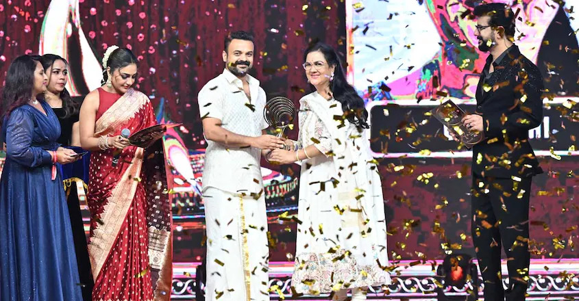 എന്റർടെയ്ൻമെന്റ് ആക്ടർ പുരസ്കാരം കുഞ്ചാക്കോ ബോബനിൽ നിന്ന് ഏറ്റുവാങ്ങി ഉർവശി