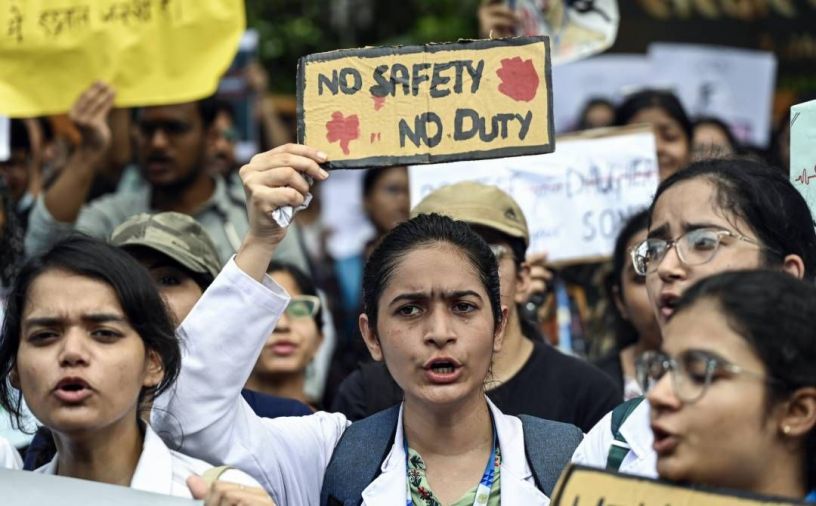 കൊൽക്കത്തയിൽ പി.ജി. ട്രെയിനി ഡോക്ടർ കൊല്ലപ്പെട്ട സംഭവത്തിൽ നീതി ആവശ്യപ്പെട്ട് ഡൽഹിയിൽ ഡോക്ടർമാർ നടത്തിയ പ്രതിഷേധം | Photo: ANI
