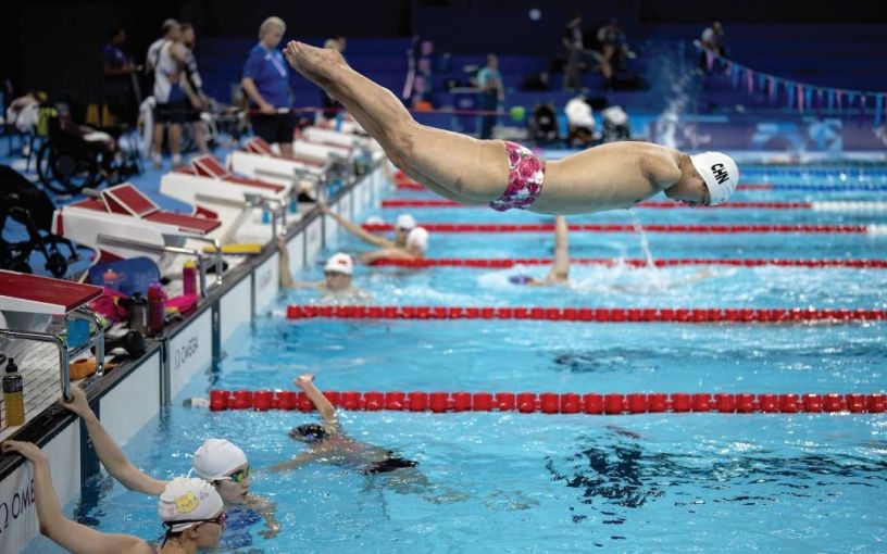 പാരലിമ്പിക്സിൽ പങ്കെടുക്കുന്ന ചൈനയുടെ നീന്തൽത്താരം വാങ് ലിങ്ചാവോ പരിശീലനത്തിനിടെ