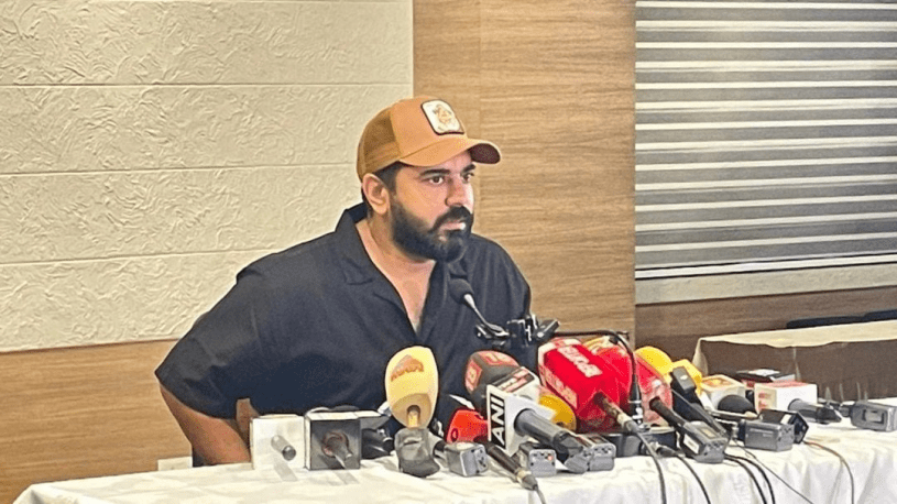 നടൻ നിവിൻ പോളിയുടെ വാർത്താസമ്മേളനത്തിൽനിന്ന്