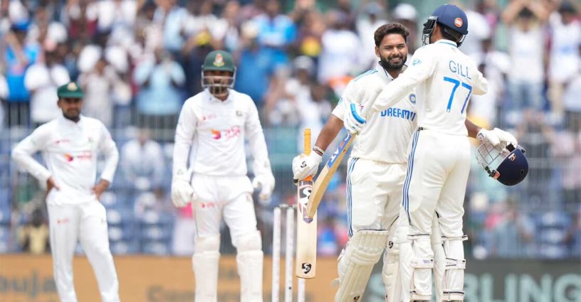 നേരത്തെ, ബംഗ്ലദേശ് സ്പിന്നർ മെഹ്ദി ഹസൻ മിറാസിനെതിരെ ഒരു പന്തിന്റെ ഇടവേളയിൽ നേടിയ ഇരട്ട സിക്സറുകളുമായാണ് ശുഭ്മൻ ഗിൽ അർധസെഞ്ചറി പിന്നിട്ടത്. ഓപ്പണർ യശസ്വി ജയ്സ്വാൾ (17 പന്തിൽ 10), ക്യാപ്റ്റൻ രോഹിത് ശർമ (ഏഴു പന്തിൽ അഞ്ച്), വിരാട് കോലി (37 പന്തിൽ 17) എന്നിവരാണ് ഇന്ത്യൻ നിരയിൽ ഇതുവരെ പുറത്തായത്. രണ്ടാം ദിനം കളി നിർത്തുമ്പോൾ മൂന്നു വിക്കറ്റ് നഷ്ടത്തിൽ 81 റൺസ് എന്ന നിലയിലായിരുന്നു ഇന്ത്യ. ഇന്ത്യയ്ക്ക് നഷ്ടമായ മൂന്നു വിക്കറ്റുകൾ ടസ്കിൻ അഹമ്മദ്, നഹിദ് റാണ, മെഹ്ദി ഹസൻ മിറാസ് എന്നിവർ പങ്കിട്ടു. പന്തിന്റെ വിക്കറ്റ് കൂടിയ നേടിയ മെഹ്ദി ഹസന് രണ്ടാം ഇന്നിങ്സിൽ ആകെ ലഭിച്ചത് 2 വിക്കറ്റ്.
