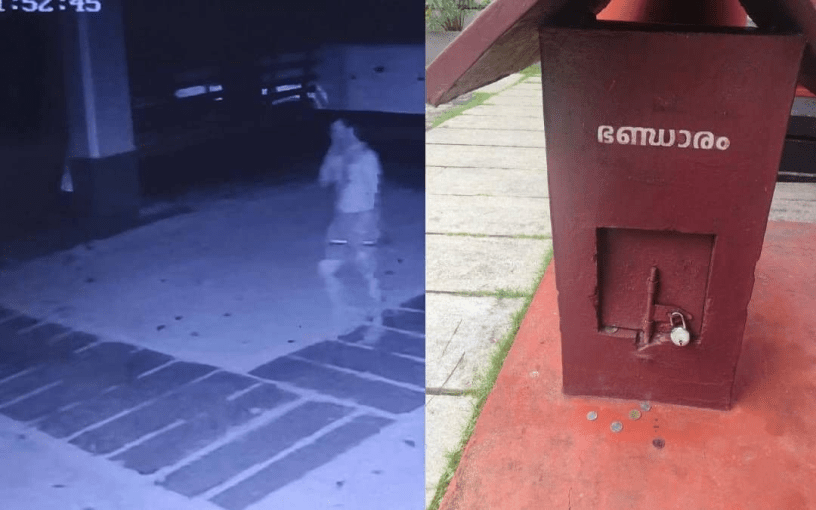 സിസിടിവിയിൽ പതിഞ്ഞ മോഷ്ടാവിന്റെ ചിത്രം, മോഷണം നടന്ന ഭണ്ഡാരം