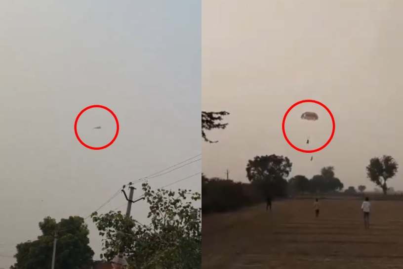 മിഗ്-29 വിമാനം തകർന്നുവീഴുന്നതിന്റേയും പൈലറ്റ് പാരച്യൂട്ടിൽ രക്ഷപ്പെടുന്നതിന്റേയും ദൃശ്യങ്ങൾ | Screen Grab / X @GautamRishi1