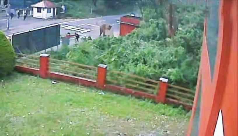 സ്കൂളിന് മുന്നിലെ റോഡിലൂടെ കടന്നുപോകുന്ന കാട്ടാന (സി.സി.ടി.വി. ദൃശ്യം)