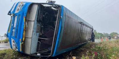 പാലക്കാട് കണ്ണന്നൂരിന് സമീപം സ്വകാര്യ ബസ് മറിഞ്ഞ് അപകടം; കുട്ടികള് അടക്കം 18 പേര്ക്ക് പരിക്കേറ്റു