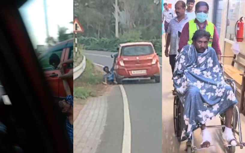 ആദിവാസി യുവാവിനെ കാറിൽ കൈകുടുക്കി റോഡിലൂടെ വഴിച്ചിഴച്ച സംഭവത്തിന്റെ ദൃശ്യങ്ങൾ, പരിക്കേറ്റ മാതൻ