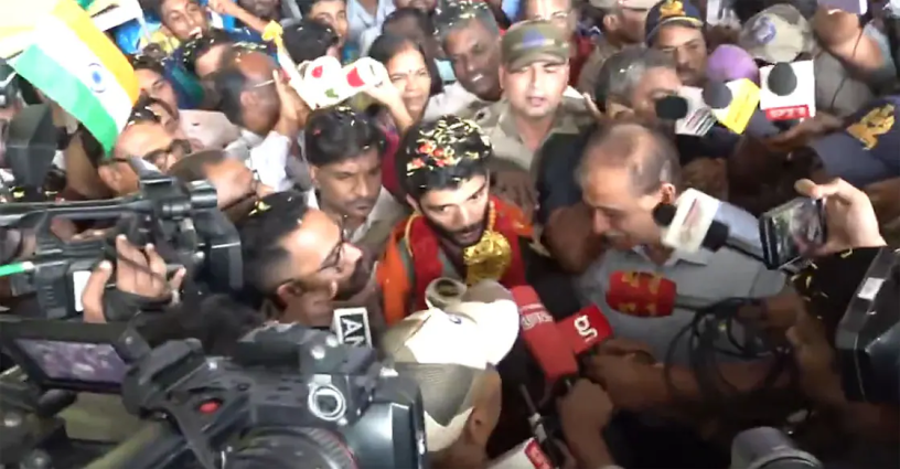 ചെന്നൈ വിമാനത്താവളത്തിൽ മാധ്യമങ്ങളോട് സംസാരിക്കുന്ന ഡി.ഗുകേഷ് (വിഡിയോ ദൃശ്യം)