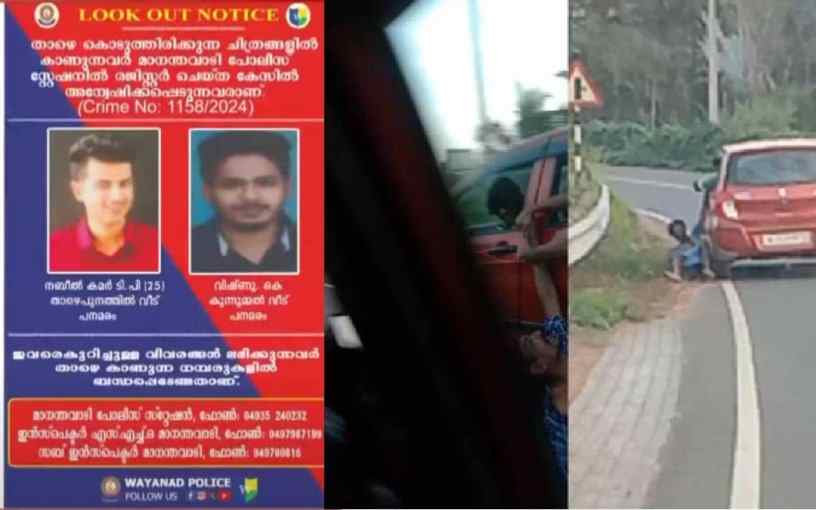 കൽപറ്റ : മാനന്തവാടിയിൽ ആദിവാസി യുവാവിനെ കാറിന്റെ ഡോറിനുള്ളിൽ കൈകുടുക്കി റോഡിലൂടെ വലിച്ചിഴച്ച സംഭവത്തിൽ രണ്ട് പ്രതികൾക്കായി ലുക്കൗട്ട് നോട്ടീസ് പുറത്തിറക്കി. പനമരം സ്വദേശികളായ താഴെപുനത്തിൽ വീട്ടിൽ ടി.പി. നബീൽ കമർ (25), കുന്നുമ്മൽ വീട്ടിൽ കെ. വിഷ്ണു എന്നിവർക്ക് വേണ്ടിയാണ് ലുക്കൗട്ട് നോട്ടീസ് പുറത്തിറക്കിയിരിക്കുന്നത്. ഇവർ ജില്ല വിട്ട് പോയിട്ടുണ്ടാവാമെന്നാണ് പോലീസ് വിലയിരുത്തൽ.