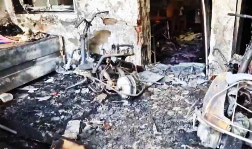കത്തിയമർന്ന ഇലക്ട്രിക് സ്കൂട്ടർ | Photo: Screengrab/ PTI