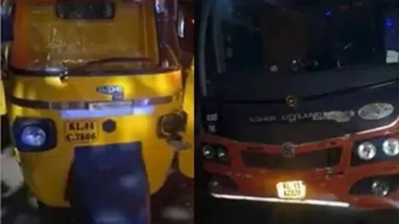 അപകടത്തിൽ പെട്ട കെ.എസ്.ആർ.ടി.സി. ബസ്സും പെട്ടി ഓട്ടോറിക്ഷയും