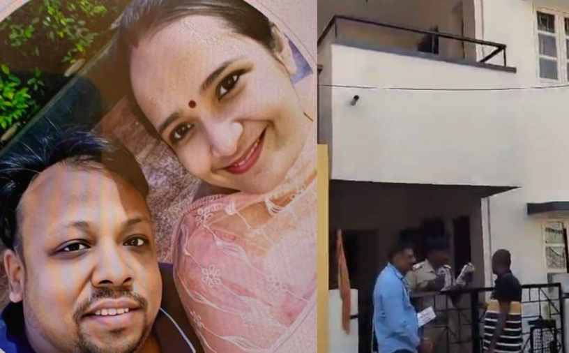 അനൂപ്കുമാറും ഭാര്യ രാഖിയും(ഇടത്ത്) കുടുംബം താമസിച്ചിരുന്ന വാടകവീട്(വലത്ത്) | Photo: x.com/MadhunaikBunty