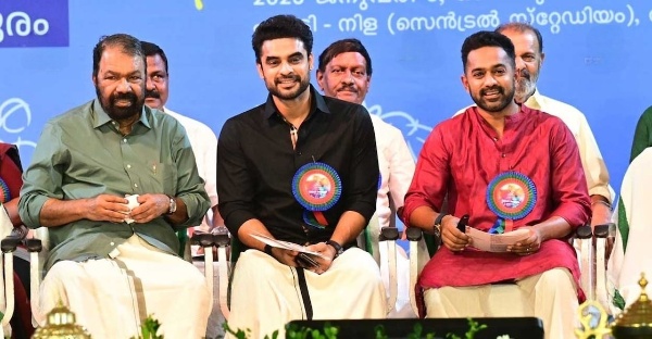 സംസ്ഥാന സ്കൂൾ കലോത്സവത്തിന്റെ സമാപന വേദിയിൽ മന്ത്രി വി.ശിവൻകുട്ടി, ടോവിനോ തോമസ്, ആസിഫ് അലി എന്നിവർ