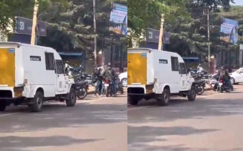 വെടിവെപ്പ് നടത്തിയശേഷം അക്രമികള് പണപ്പെട്ടിയുമായി ബൈക്കില് രക്ഷപ്പെടുന്നതിന്റെ ദൃശ്യങ്ങളും പുറത്തുവന്നിട്ടുണ്ട്. പട്ടാപ്പകല് ആളുകള് നോക്കിനില്ക്കേ തിരക്കേറിയ റോഡിലായിരുന്നു സംഭവം. ബൈക്കിലെത്തിയ രണ്ടുപ്രതികളും ഹെല്മെറ്റ് ധരിച്ചിരുന്നു. സംഭവത്തില് പോലീസ് അന്വേഷണം ഊര്ജിതമാക്കിയതായാണ് റിപ്പോര്ട്ട്.