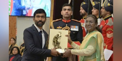 ടെൻസിങ് നോർഗെ നാഷനൽ അഡ്വഞ്ചർ പുരസ്കാരം ഏറ്റുവാങ്ങി മലയാളി സ്കൈ ഡൈവർ ജിതിൻ വിജയൻ