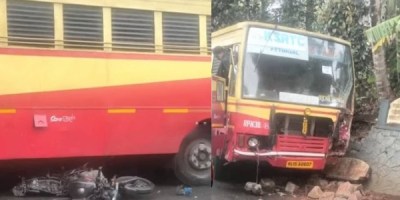വാര്യാപുരത്തിന് സമീപം ചിറക്കാലയില് ബൈക്ക് നിയന്ത്രണം വിട്ട് കെ.എസ്.ആര്.ടി.സി. ബസിലേക്ക് ഇടിച്ചുകയറി; ബൈക്ക് യാത്രികന് ഗുരുതര പരിക്ക്
