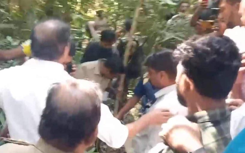 മന്ത്രിയുമായി തർക്കിക്കുന്ന നാട്ടുകാർ