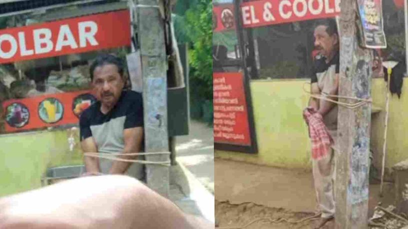 പോസ്റ്റിൽ കെട്ടിയിട്ട നിലയിൽ കുഞ്ഞുമൊയ്തീൻ