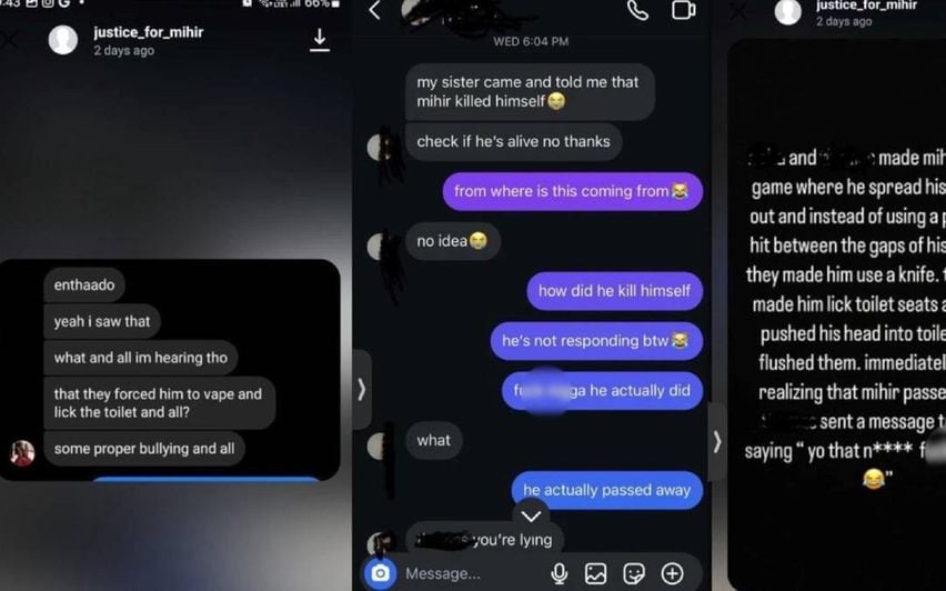 മിഹിറിന്റെ മരണശേഷം ‘ജസ്റ്റിസ് ഫോര് മിഹിര്’ എന്ന പേരില് സഹപാഠികള് ഒരു ഗ്രൂപ്പ് തുടങ്ങിയിരുന്നു. ഈ ഗ്രൂപ്പ് വഴിയും മിഹിറിന്റെ ചില സുഹൃത്തുക്കള് വഴിയുമാണ് ബന്ധുക്കള്ക്ക് ചാറ്റുകളും മറ്റു തെളിവുകളും ലഭിക്കുന്നത്. എന്നാല്, ഈ ഗ്രൂപ്പ് രണ്ട് ദിവസത്തിനകം തന്നെ ഡിലീറ്റ് ചെയ്യപ്പെട്ടെന്ന് മിഹിറിന്റെ മാതൃസഹോദരന് ശരീഫ് പറഞ്ഞു. ഗ്രൂപ്പില്നിന്നുള്പ്പെടെ ലഭിച്ച വിവരങ്ങളുടെ സ്കൂള് അധികൃതര്ക്ക് പരാതി നല്കിയിരുന്നു. കാര്യമായ നടപടികള് ഉണ്ടാകാത്ത പശ്ചാത്തലത്തിലാണ് മുഖ്യമന്ത്രിക്കും ഡിജിപിക്കും ഉള്പ്പെടെ പരാതി നല്കിയതെന്നും ശരീഫ് വ്യക്തമാക്കി.