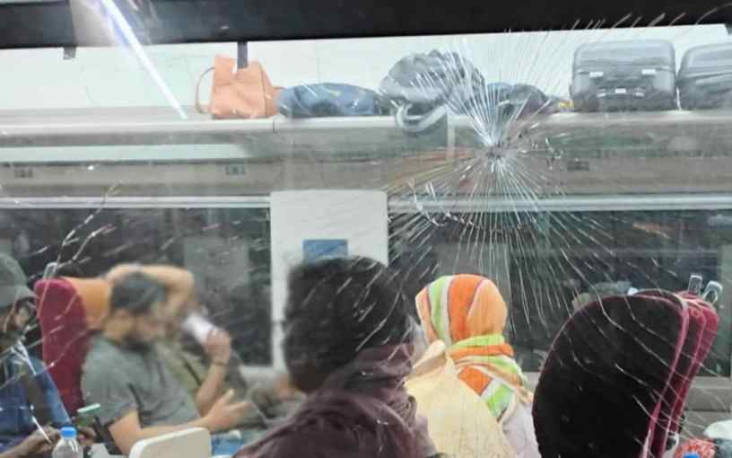 കല്ലേറിൽ ട്രെയിനിൻറെ ചില്ല് പൊട്ടിയ നിലയിൽ