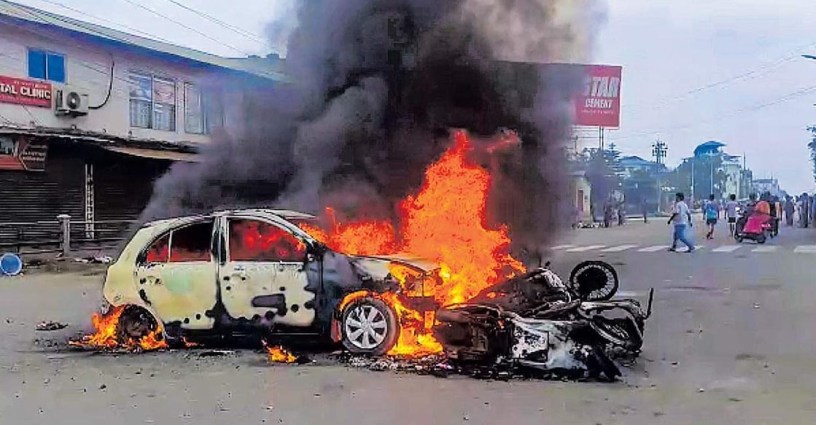 പ്രക്ഷോഭത്തിനിടെ തീയിട്ട വാഹനങ്ങൾ