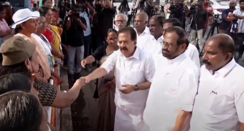 ആശ വർക്കർമാരുടെ സമരത്തിനു പിന്തുണയുമായി രമേശ് ചെന്നിത്തല എത്തിയപ്പോൾ.