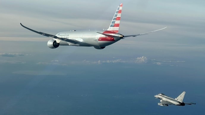 ഇറ്റാലിയൻ വ്യോമസേനയുടെ യുദ്ധവിമാനങ്ങൾ വിമാനത്തെ റോമിലെ ലിയോനാർഡോ ഡാവിഞ്ചി-ഫിയുമിസിനോ വിമാനത്താവളത്തിലേക്ക് കൊണ്ടുപോകുന്നു.