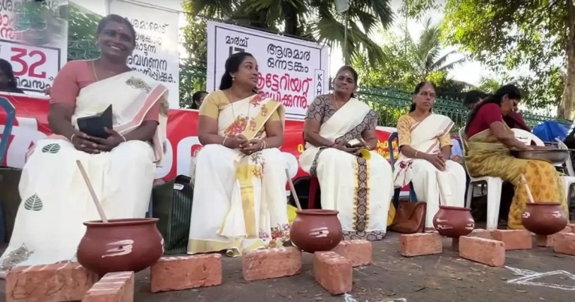 സെക്രട്ടേറിയറ്റിന് മുന്നിൽ പ്രതിഷേധ പൊങ്കാലയിട്ട് ആശാ വർക്കർമാർ.