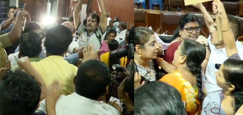 നിലവില് പ്രതിഷേധം ചെയര്പേഴ്സന്റെ മുറിയിലേക്കും വ്യാപിച്ചിരിക്കുകയാണ്. ആദ്യം യുഡിഎഫ്, എല്ഡിഎഫ് അംഗങ്ങള് നഗരസഭയില് പ്രതിഷേധിക്കുകയായിരുന്നു. കൗണ്സില് യോഗം ആരംഭിക്കാനിരിക്കെയായിരുന്നു പ്രതിഷേധം. നൈപുണ്യ വികസന കേന്ദ്രത്തിന് ഹെഡ്ഗേവാറിന്റെ പേര് നല്കുന്നത് അംഗീകരിക്കില്ലെന്ന് ആരോപിച്ചായിരുന്നു പ്രതിപക്ഷത്തിന്റെ പ്രതിഷേധം. എന്നാൽ പ്രമേയം പാസാക്കിയെന്നും ഭൂരിപക്ഷം ഉണ്ടെന്നും ചെയർപേഴ്സണ് പ്രതികരിച്ചു.