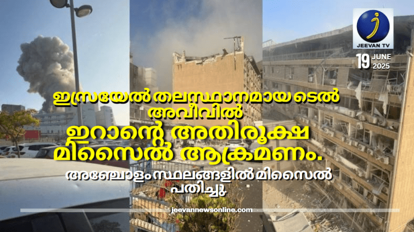 ഇസ്രയേൽ : ഇസ്രയേൽതലസ്ഥാനമായ ടെൽ അവീവിൽ ഇറാന്റെ അതിരൂക്ഷ മിസൈൽ ആക്രമണം. അഞ്ചോളം സ്ഥലങ്ങളിൽ മിസൈൽ പതിച്ചു. ഇസ്രയേലിലെ സൊറോക്ക മെഡിക്കൽ സെന്ററിന് നേരെയും ആക്രമണം ഉണ്ടായി. അയൺ ഡോമിന് മിസൈലുകളെ പ്രതിരോധിക്കാൻ കഴിഞ്ഞില്ല. ബഹുനില കെട്ടിടങ്ങളിലാണ് മിസൈൽ പതിച്ചത് . ഇസ്രയേലിലെ സൊറോക്ക മെഡിക്കൽ സെന്ററിന് നേരെയും ആക്രമണം ഉണ്ടായി. നിരവധിപ്പേർക്ക് പരുക്കേറ്റു.