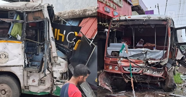 ഇന്ന് പുലർച്ചെ 1.30 ഓടെ ആയിരുന്നു അപകടം. കുന്നംകുളത്തു നിന്ന് ചെറുതുരുത്തിയിലേക്ക് മത്സ്യവുമായി പോകുകയായിരുന്നു ലോറി. ഹൈവേയിലൂടെ വന്ന് പന്നിത്തടം ജംക്ഷൻ മറികടക്കുകയായിരുന്ന ബസ്സിനെ കുന്നംകുളം – വടക്കാഞ്ചേരി സംസ്ഥാന പാതയിലൂടെ അമിത വേഗതയിൽ വന്ന ലോറി ഇടിക്കുകയായിരുന്നു. ഇടിയുടെ ആഘാതത്തിൽ രണ്ടു വാഹനങ്ങളും ജംക്ഷനിലെ രണ്ടു കടകളുടെ മുൻവശത്തേക്ക് ഇടിച്ചു കയറിയാണു നിന്നത്. രണ്ടു വാഹനങ്ങളുടെയും മുൻഭാഗം പൂർണമായി തകർന്നു. പെർമിറ്റാല്ലാത്ത റൂട്ടിലൂടെയാണ് കെഎസ്ആർടിസി ബസ് സർവീസ് നടത്തിയത് എന്നാണ് ആരോപണം.