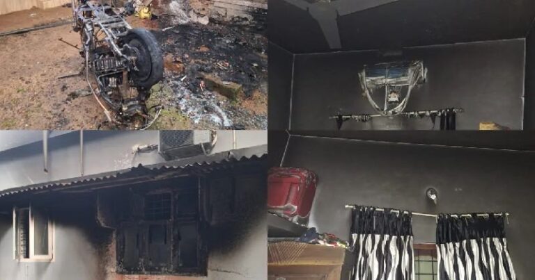വീടിന്റെ പോര്ച്ചില് നിര്ത്തിയിട്ടിരുന്ന ടി.വി.എസ്. ഐക്യൂബ് എസ് ഇലക്ട്രിക് സ്കൂട്ടറിനാണ് തീപിടിച്ചത്. തീ വളരെ വേഗം വീടിന്റെ ജനലുകളിലേക്കും റൂമിലേക്കും പടര്ന്നു. റൂമിലുണ്ടായിരുന്ന എ.സി, മറ്റ് വീട്ടുപകരണങ്ങള് എന്നിവ കത്തിനശിച്ചു.